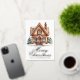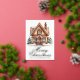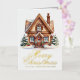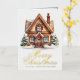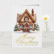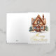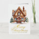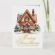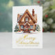 Diese niedliche Weihnachtskarte hat Ihren personalisierten echten Anwesen oder anderen Firmennamen und Happy Holidays Nachricht in schicke Goldfolien Typografie zusammen mit einem wunderschönen Bild eines Hauses im Winter umgeben von Kiefern. Berufliche Urlaubskarten für Immobilien Marketing.