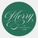 Elegant Merry Calligraphy Script Green Holiday Runder Aufkleber