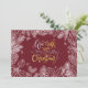 Schöne weiße Pflanze umgeben einen Weihnachtsgrüßen auf der Vorderseite und Ihre personalisierte Begrüßung und Botschaft auf der Rückseite. Wählen Sie einen beliebigen COLOR Hintergrund für die Vorder- und Rückseite - wir zeigen dunkelrot. *Fügen Sie auch ein Foto auf der Rückseite hinzu. Wählen Sie Matte für schwerstes Papier und High Definition für beste Druckqualität.