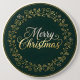 Share timeless holiday cheer with this elegant Christmas design. Set on a rich dark green circular background with a refined gold border, a festive wreath of golden holly leaves and delicate snowflakes beautifully frames the message “Merry Christmas.” The word “Merry” shines in shimmering silver script, while “Christmas” appears in complementary golden lettering, both with a luxurious metallic finish. Perfect for traditional Christmas greetings, this design radiates warmth, sophistication, and classic holiday spirit.
