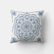 Delikat dekorierte Kissen im indischen Mandala-Thema, weiß und metallisch blau.