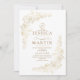Elegant Wedding invitation white roses with gold dust are elegant and classic invite. Design features an handwritten font and modern minimalist design.