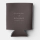 This wedding can cooler features a rich mocha brown background with clean minimal typography displaying the couple’s names and date. The simple design creates a modern, elegant look that works beautifully for fall weddings, cocktail hours, and reception celebrations. Perfect for keeping drinks cold while adding a personalized detail to the party. Customize the names and wedding date to create a stylish keepsake guests will use throughout the celebration.