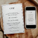 Elegant minimalist wedding invitations like this timeless black and white design are perfect for modern couples seeking a clean, classic aesthetic for their big day. Featuring a formal serif monogram at the top and a sophisticated typographic layout throughout, this invitation blends traditional formality with contemporary simplicity. The monochrome color palette and centered alignment create a refined look, ideal for upscale weddings and formal events, it provides all essential details in a sleek, stylish format. Whether you're hosting a black tie wedding or an intimate city ceremony, this modern classic invitation suits a wide range of elegant themes. Ideal for couples who appreciate minimal design with maximum impact, this invitation sets the tone for a sophisticated celebration with grace and clarity. Available as printed cards or an instant digital download.
