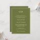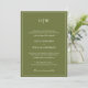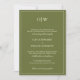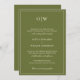 Olive green wedding invitations with a monogram layout offer a fresh yet timeless look, ideal for couples planning a nature-inspired or modern formal celebration. This elegant design features a rich olive background with clean white text and a thin, refined border that frames the content with subtle sophistication. A personalized monogram at the top creates a custom feel, while the combination of serif block fonts and flowing script adds visual contrast and romantic charm. Perfect for botanical weddings, garden ceremonies, or minimalist fall events, this invitation sets a grounded and elegant tone. The layout presents all essential wedding details with clarity, making it easy for guests to read while maintaining a stylish, polished appearance. Whether you're hosting a rustic outdoor wedding or an elegant indoor affair with earthy tones, this olive green invitation delivers a unique blend of natural beauty and timeless elegance.