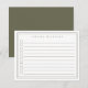 Create your own personalized checkbox note cards in olive green with monogram name in elegant chic typography and two line border design.