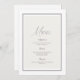 This elegant minimalist wedding menu features a refined ivory background, a sophisticated double-line border, and timeless typography that complements any modern, classic, or romantic wedding theme. Clean, stylish, and easy to read, it brings luxury simplicity to your reception table décor. Fully customizable to match your wedding details and color palette.