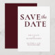 Eleganter bordeauxroter, schlichter und moderner minimalistischer Stil Save the Date.