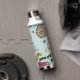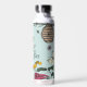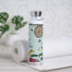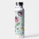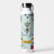 Diese elegante Mint Floral Queen Bee Water Flasche zeigt handgezeichnet Illustrationen einer Königin Biene, ihrer Königsgoldkrone, exotischen Blume und Wildblumen mit einer anpassbaren Vintagen Goldrolle.