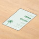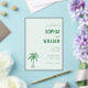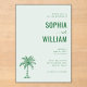 This elegant wedding invitation features a minimalist design with a soft mint green background, creating a serene and sophisticated atmosphere. The layout is clean and well-balanced, showcasing the names in bold, uppercase letters with a decorative line separating them, while a simple palm tree illustration adds a tropical touch. The typography combines serif fonts for a formal look with a cursive "and" for a romantic flair, making it perfect for a stylish and understated celebration. Ideal for couples seeking an inviting yet refined aesthetic, this invitation sets the tone for a memorable event.