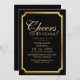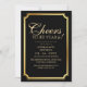 Modern stylish birthday party invitation black with gold dust on with a gold ink pour effect (the gold is a digital effect, not real foil) and modern calligraphy. Classy and elegant, simple and modern invitation.