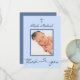 Vielen Dank an Ihre Familie und Freunde für ihre großzügigen Geschenke und die Unterstützung Ihrer Familie, als sie an der Taufe Ihres Sohnes teilgenommen haben. Wir danken ihnen mit eigenen Worten oder nutzen das, was bereits entwickelt wurde. Dieses elegante und dennoch minimalistische Dankeschön präsentiert ein einfaches Design mit dem Foto Ihres Babys vorne. Blau-Schattierungen mit Skriptkalligrafie fügt sich in den schönen Stil dieses Dankes zur Kenntnis.