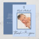 Elegant Modern Blue Foto Taufe Vielen Dank Dankeskarte