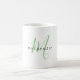 Elegante moderne Green Script Monogram Coffee Tasse. Ein elegantes, grünes Skript-Monogramm kombiniert mit einem sauberen schwarzen San-Serif-Schriftart sorgt für ein zeitgemäßes Aussehen.