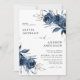 Elegant Modern Navy Blue Floral Wedding Einladung
