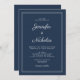 Elegant Modern Navy Blue Script Wedding Invitation.