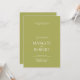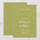 A minimalist wedding invitation featuring a refined olive green and white palette, paired with elegant serif typography and a soft script accent. The clean, structured layout creates a modern and understated look, perfect for couples who prefer a calm, editorial style.