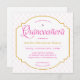 Erleben Sie den 15. Geburtstag Ihrer Tochter mit dieser eleganten, modernen Rosa Gold Quinceñera Einladung. Glamourös fuchsienheiß rosa und goldfarben mit einem Imitat-Kristall-Kristall und geometrischen Mustern und Formen machen diese Quinceanera-Einladungen einfach und atemberaubend. Eine schöne Art, die Freude eines mädchenhaften süßen 15 zu teilen!