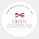 Trendy minimalist red bow simple, elegant typography Merry Christmas holiday gift wrap custom sticker label.