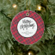 Elegant Modern Red Plaid Christmas Family Photo Keramik Ornament