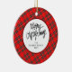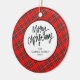 Elegant Modern Red Plaid Christmas Family Photo Keramik Ornament