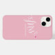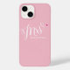 Das Brautparty- oder Jubiläumsgeschenk - ein elegantes, personalisiertes iPhone 14 Gehäuse, das sowohl stilvoll als auch funktional ist. Dieses elegante, schwarze Gehäuse mit seiner eleganten Kalligraphie von "Mrs." und dem zukünftigen Nachnamen der Braut, begleitet von einem niedlichen, heißen rosa Herz.