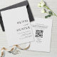 Dieses elegante Hotel in einer Hochzeitseinladung bietet moderne Kalligraphie und eine klassische, kühne Schrift. Mit seinem glänzenden grauen Hintergrund ist es elegant und frisch. Auf der Rückseite finden Sie einen QR-Code, mit dem Sie Ihre Hochzeitswebsite und die Anfahrtsbeschreibung für die uAwg verlinken können.