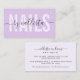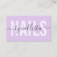 Diese moderne und einfache Visitenkarte eignet sich für jeden beruflichen. Das moderne und elegante Schwarz-Pastellfarben-Design mit lila und kursiven Schriftart besticht durch einen minimalistisch-lila-lila Hintergrund. Es ist eine großartige Wahl für Nagelkünstler. ***WICHTIGE HINWEIS FÜR DESIGN: Für individuelle Designanfragen, wie z.B. passende Produktanfragen, Farbänderungen, Platzierungsänderungen oder andere Änderungswünsche, klicken Sie bitte auf den Button "MESSAGE" oder senden Sie eine E-Mail an den Designer direkt unter lafemme.art@gmail.com. Sie können ihr sogar eine Anfrage für ein komplett individuelles und neues Design schicken.