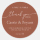 Elegant Modern Terracotta Boho Wedding Danke klassische Rundaufkleber für Ihre Gastgeschenk Hochzeit Tags. Personalisieren Sie den Text für jeden Anlass.