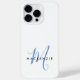 Elegant Modern White Blue Script Monogram Case-Mate iPhone Hülle