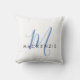 Elegant Modern White Blue Script Monogram Kissen