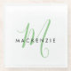 Elegant Modern White Green Script Monogram Glasuntersetzer