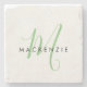 Elegant Modern White Green Script Monogram Steinuntersetzer