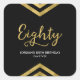 Dieser elegante quadratische 80. Geburtstagsparty-Aufkleber weist ein modernes geometrisches Zickzack auf und das Wort "Achtzig" in Imitat Gold vor schwarzem Hintergrund. Es ist großartig für eine 80. Geburtstagsfeier. Karo Sie hier die passenden Einladungen und Artikel aus http://www.zazzle.com/collections/modern_faux_gold_chevron_celebration_collection-119531050277382712?rf=238364477188679314 Personalisieren Sie diese mit Ihren Daten, indem Sie den Platzhalter-Text ersetzen. Für weitere Optionen klicken Sie auf die Schaltfläche "Anpassen". *Bitte beachten Sie, dass das Zazzle-Wasserzeichen, das in der Zoomvorschau angezeigt wird, NICHT auf dem gedruckten Endprodukt erscheint. © Rosewood and Citrus