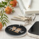 Elegant Monogram Black Gold Script Office School minimal Keychain