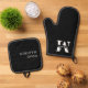 Elegant Monogram Black Ofenhandschuh & Topflappen-Set