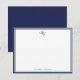 Create your own custom note cards with personalized monogram initials in an elegant modern typography alongside blue and white border design.