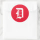 Elegantes weißes Monogramm D auf rotem Hintergrund.