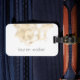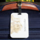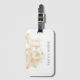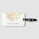 Gepäckanhänger mit einem personalisierten Monogramm in einem eleganten Schriftart gepaart mit einer goldenen Muschelillustrierung.
