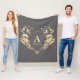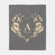 Moderne, elegante, stilvolle graue Fleecedecke mit eleganter goldblättriger Herzmonogramm.