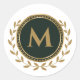Elegantes Monogram Erstklassiges Gold Classic Round Sticker Siegel. Imitate goldfarbenes, monogramm-Blatt-Kranz-Emblem mit dunkelgrüner Mitte. Personalisieren Sie Ihre eigene Monogramm Initial. Hervorragend für Umschlag Aufkleber, Siegel und Verpackungsetiketten. Wir laden Sie ein, unseren Zazzle-Shop, Simon & Grace, zu besuchen, um passende Produkte und mehr zu erhalten. Bitte kontaktieren Sie uns, wenn Sie Unterstützung bei der Gestaltung benötigen.