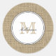 Elegant Monogram Name Country Chic Style Burlap Runder Aufkleber