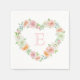 Elegant Monogram Pink Floral Heart Wedding Serviette