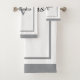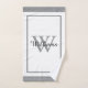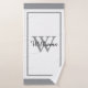 Add a touch of timeless elegance to your bathroom with our custom monogram bath towel set, personalized with your name and initial in a beautifully simple and modern design. Featuring the name and initial in a blend of modern and script fonts with grey and black text, set against a white background along with a grey border, these colors can be changed if preferred. Whether you're updating your own space or gifting to someone special, this piece combines style and individuality in one stunning accent.