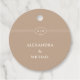 Erhöhen Sie Ihre Gastgeschenke Hochzeiten mit diesem personalisierten, minimalen Taupe Gastgeschenk Hochzeit Tag, der ein minimalistisches, gefügtes Design und eine Bio ovale Form aufweist, die das Mongramm des Paares in der Mitte wunderschön umrahmt. Chic Creme Typografie in einem eleganten Skript-Schriftart fügt eine Touch von Eleganz vor dem klassischen Licht taupe Hintergrund. Ideal für eine einfache, moderne Hochzeit, bringt dieser Tag Ihren Lieblingen einen dezenten Stil und bietet Ihnen ein herzliches Dankeschön an Ihre Gäste.