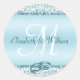 Elegant Monogram Wedding Blue Metallic Runder Aufkleber