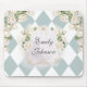 Elegant Monogram White Roses Green Leaves Diamond Mousepad