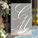 Eleganter, monogramm, weiß, transparent, Script-Schriftart, Hochzeitsacrylzeichen. Lassen Sie Ihren Tag unvergesslich mit unserem Akryllischen Begrüßungszeichen, einer gelungenen Mischung aus minimalistischem Design, eleganter Einfachheit und luxuriösem Flair. Dieses zeitlose Accessoire ist mehr als nur Dekoration, es ist ein herzlicher Empfang für Ihre Gäste, die einen stilvollen Ton von der Ankunft an setzen. Unser Begrüßungsschild aus Acryl verbindet hochwertige Materialien mit einem eleganten, modernen Design. Die glänzende Oberfläche reflektiert subtil das Licht und fügt Ihrer Hochzeitsfeier eine Touch Exklusivität hinzu. Das perfekt proportionierte Schild fügt sich nahtlos in jede Hochzeitsdekoration ein und vergrößert Ihren Empfang mit einer unverwechselbaren Touch. Ein unvergesslicher Empfang zeigt Ihre Liebe zum Detail und die Liebe für geschmackvolle, hochwertige Akzente mit unserem AcrylWillkommensschild. Es ist die ideale Ergänzung zu einer stilvollen Hochzeit, die Ihr Engagement für ein schönes und unvergessliches Erlebnis symbolisiert.