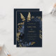 Elegant Moody Dark Floral Navy Blue Gold Hochzeit Einladung