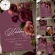 Embrace timeless elegance for your gothic-inspired celebration with our captivating wedding order of events poster sign with gold wedding icons. A soft burgundy background provides the perfect canvas for a captivating, yet understated bouquet. Imagine a corner arrangement of muted rose blooms, where soft rust blush and rich burgundy hues mingle with dark green foliage. This ethereal design exudes quiet sophistication, perfect for the couple seeking a touch of romantic darkness. An elegant, vintage script announce your welcome, while your wedding details are showcased in a modern font, ensuring they stand out beautifully. This enchanting sign creates a truly unforgettable design for your special day, setting the tone for a moody and elegant celebration of love. Created by Simply Farmhouse Press.